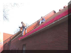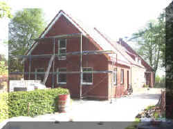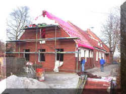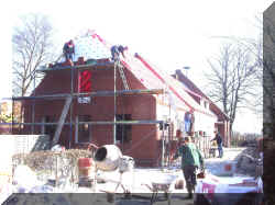 9.4.2005 Die ersten Vorarbeiten zum Dachdecken sind erledigt. |