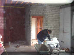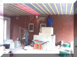 7.5.2005 Die Decke ist fast fertig mit Femacell verkleidet. Der Durchgang zur "Alten Schule" erledigt. |