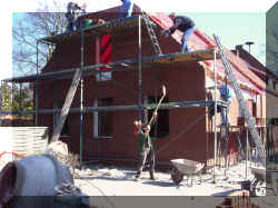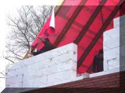 19.3.2005 Die Giebelwand wird mit weißen Steinen zugemauert. |