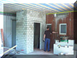 19.3.2005 Die nörliche Wand wurde fertig verblendet. Die Fensterleibungen fertiggemacht. |