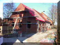 26.3.2005 Die Giebelwand wurde weiter verblendet und die südliche Wand mit Fenster und Eingangtür. |