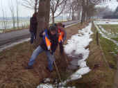 ![]() Hinter jeden Baum und Strauch suchten die Teilnehmer Schutz vor dem eisigen Wind und den Hagelschauer. Gruppenbild groß |