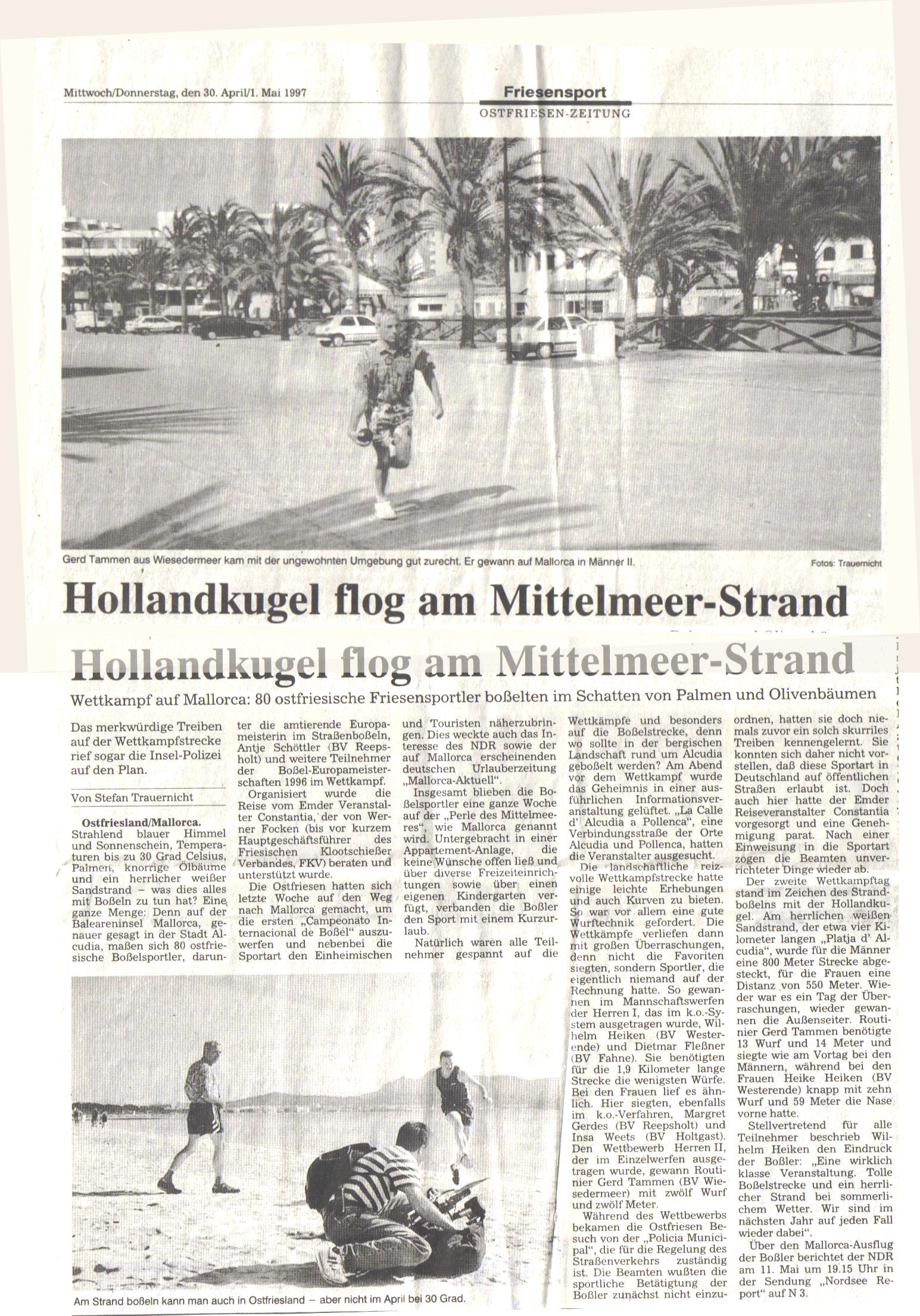 Der FKV war 1997 auf Mallorca zum boßeln, hier der Zeitungsbericht: